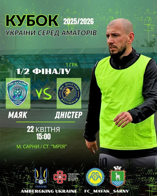 Уже цієї середи 22 квітня, у Сарнах на стадіоні “Мрія” приймаємо ФК “Дністер” (Заліщики) у рамках першої півфінальної гри Кубка України серед аматорських команд.